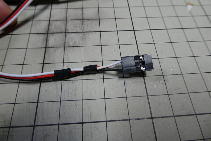 ![]() アンプにコネクターをハンダ付けします。 コードのスペースを有効に使うために最近は逆向きにコネクタを取り付ける ことが多くなっています。 ハンダ付けをする前に、0.3ミリの銅線で縛っておくと、ハンダ付けが確実になります。 縛りで撚った部分は、後で ニッパで切り落とします。 ![]() ハンダ付け作業が完了しました。 ![]() サーボテスターでモーターの回転方向を確認しておきます。 その時にアンプのコードとモーターのコードに通し番号 を振っておきます。 ![]() 受信機にはBECを使用せず、別電源を使う仕様なので、+のコードは取り外して養生しておきます。 |
