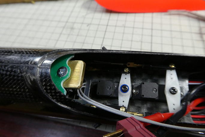 ![]() カーボンで作っておいたコの字の構造体。 バラスト受けにします。 ![]() 受信機プレートに接着します。 ![]() 15ミリ幅の真鍮バラストを保持しします。 ![]() 胴体側のバラスト受けは2ミリFRP板から切り出しました。 ![]() この位置に接着します。 ![]() バラストはXplorerスタイルで取り付けます。 |