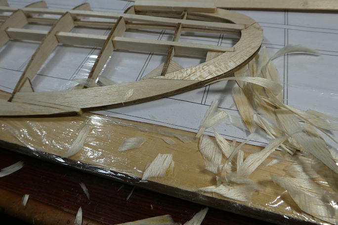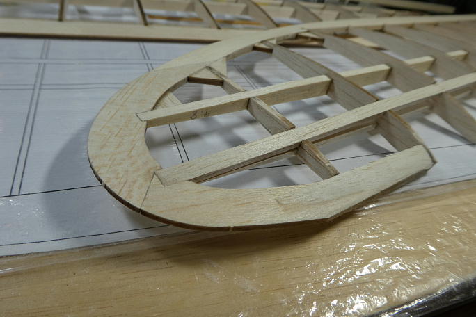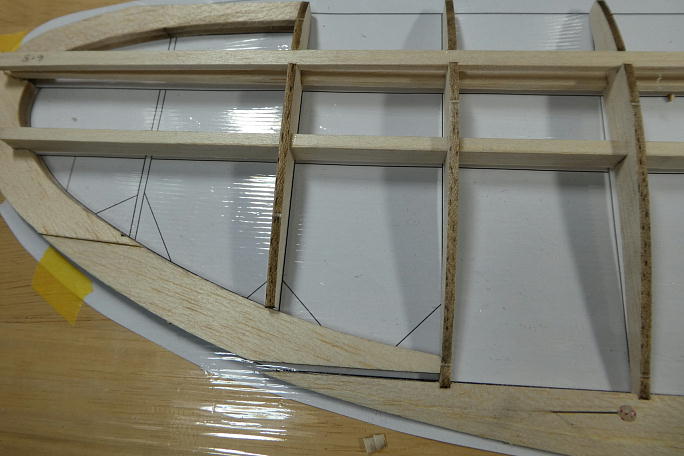 ![]() 貼り合わせておいた、分割された翼端材を図面上で接着して形にします。 パーツの切断面はレーザーカットキット独特の 斜め感がありますので、サンディングボードで直角出しをしてからの接着になります。 ![]() 組んで行くと3ミリ程の隙間が出来てしまいました。 このあたりも、板厚の誤差によるあおりを受けているようです。 ![]() スクラップバルサを押し込んで接着します。 後で整形します。 ![]() この部分には必要が無さそうな補強材を接着します。 レーザーカットで修正無しで接着出来る希なパーツでした。 ![]() 前縁付近はこのような段差が出来ます。 フイルムを貼って、張りで前縁を形成する仕様です。 ![]() スクラップバルサはふんだんにあるので、適当なバルサを接着、段差を埋めて上げる事にします。 ![]() ![]() カッターで荒削り後にサンディングボードでサンディングして仕上げます。 ![]() 後縁側はこの様に仕上がりました。 こちらは前縁側です。 |