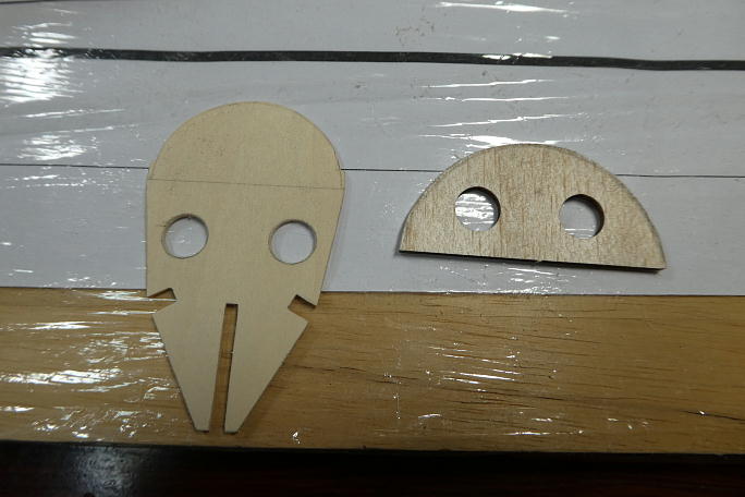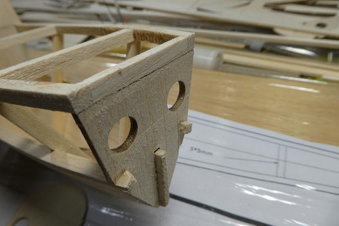 ![]() 左が追加製作した2ミリベニヤ製モーターマウントで、右がモーターマウント直後の胴枠です。 キット指示では、この間は バルサブロックで埋める事になりますし、前作ではそのように製作しました。 今回はこの間のスペースも使いたかったので、プランク仕様に変更します。 胴枠の方はプランク材の厚みの分を差っ 引いたサイズに加工しておきます。 ![]() モーターマウントを接着する前に接着部をサンディングして平らに均しておきます。 ![]() モーターマウントの接着と面出しを行いました。 ![]() 胴枠を接着、プランク部分をモーターマウントと角度を合わせて削っておきます。 |