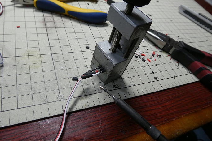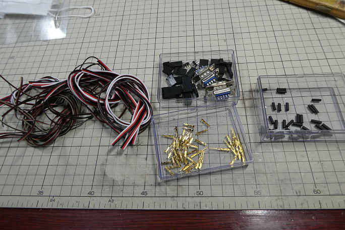 ![]() 今回、同じ機体を2機同時に製作しますので、共通部分は二機分まとめて製作します。 ワイヤーハーネスは二機分の コードやコネクター部材を準備します。 ![]() ![]() D−SUB9ピンコネクタを作ります。 いつもより太めのコードを使っているため、見た目がごつくなっています。 ![]() メスコネクターはスペースを確保するためにピンヘッダーを使用し、ハンダ付けにて製作します。 ![]() エルロンサーボの延長コードには抜き差しの時にコードを掴む事があるので、シュリンクチューブで保護をしておきました。 ![]() ハンダ付けしたピンヘッダーにはシュリンクチューブを掛け、首部分にスーパーXを盛って保護とします。 ![]() 出来上がったコードはサーボテスターとジャンクサーボを使って動作確認をしておきます。 受信機側のコードには この時点でコネクタにエルロンとフラップの識別を書き込んでおきます。 |