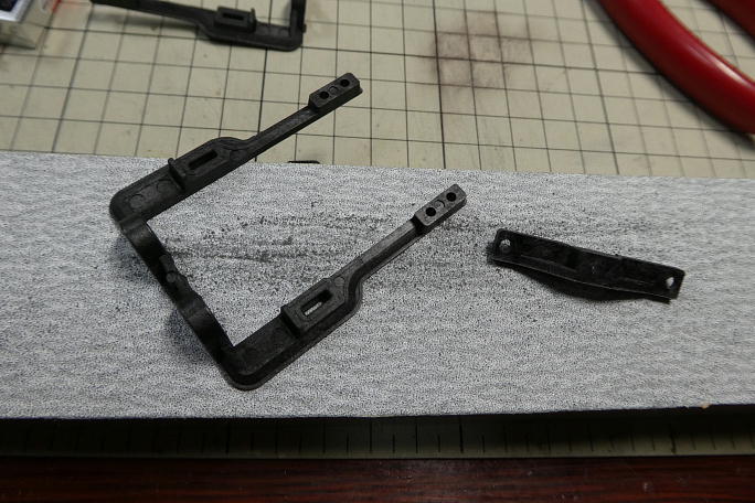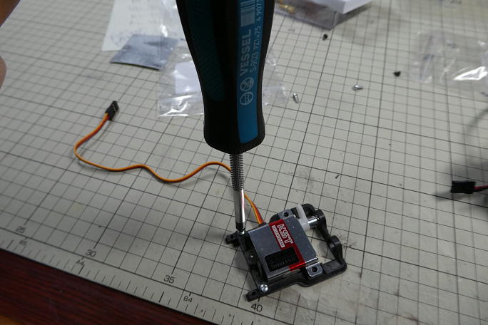 ![]() サーボホーン支持用のベアリングは固くて、サーボベースに手では入らなかったので、ミニバイスを使って圧入します。 ![]() ネジ締めにはポジドライブを使います。 ![]() サーボベースはX10miniとX10が共通です。 X10miniにのサイズに合わせて飛び出た部分をカットしておきます。 ![]() サーボベースの底面は樹脂のヒケがあって平らではないので、サンディングボードにこすりつけて削って整えます。 |