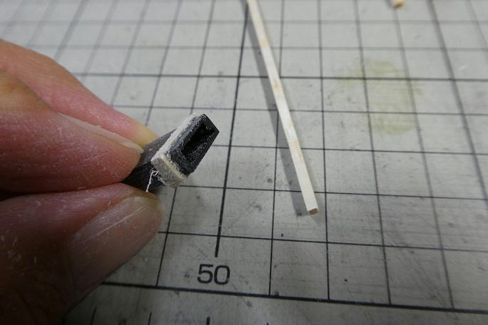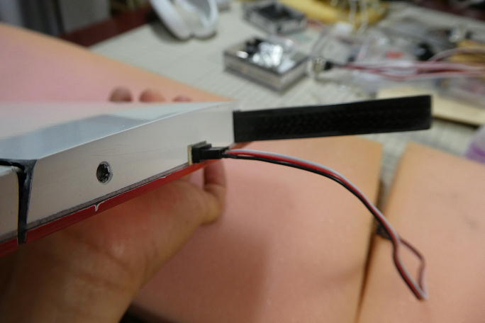 ![]() 作って置いたハーネスを通し、D−SUB9ピンコネクタを2.6ミリの皿タッピングねじで固定します。 ![]() 動作確認も終わったので、ブラスホーンは瞬間接着剤を一滴流して接着してしまいます。 ![]() エルロンサーボ用コードの取り出し口が大きくて、いつもの様にコネクタを接着する事が出来ません。 ![]() バルサの堅い所を切り出してコネクタの周囲に接着、コネクタのサイズを穴に合わせます。 ![]() カンザシを利用して角度を合わせ、コネクタを翼端にを着します。 |