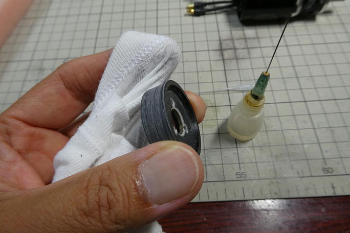 ![]() モーターマウントの接着準備にマウントと胴体の接着面を硬化促進剤で拭いておきます。 使用するのはロックタイトの 712です。 ![]() 胴体とモーターマウントの隙間に低粘度瞬間接着剤を流して接着します。 シャフト穴から瞬間接着剤のノズルを 差し込んで、内部からも数滴の瞬間接着剤を流しておきます。 ![]() ![]() NANモデルのこの手のモーターマウントは、フランジ部分が胴体より出っ張ります。 胴体にテープで養生をして、 出っ張っているフランジ部分を削り落とします。 成型が終わったマウント回りです。 |