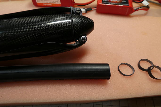 ![]() アンテナ線の取り出し口を作ります。 3ミリのシュリンクチューブを内径1.5ミリになるように縮めます。 1.5ミリのFRP ロッドにシュリンクチューブを被せ収縮させると丁度良い物が出来上がります。 ![]() 胴体、キャノピー後ろにアンテナ取り出し口を作ります。 左右のアンテナの開きが90°になるようにゲージを作って チューブを瞬間接着剤で接着します。 ![]() アンテナはこのように取り出します。 |
