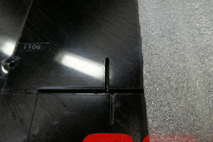 ![]() エルロンホーン取り付けスロット回りをマスキングします。 切り欠き部分から1ミリ弱離しています。 ![]() エルロンホーン取り付けスロットにカーボンパウダー入り5分エポキシを充填します。 薄いヘラを使って、ロハセルが 白く見えないように内壁にも良く塗り込んでおきます。 ![]() エルロンホーンにはコントロールロッドを組んだ状態で接着します。 はみ出で来るカーボンパウダー入り5分エポキシをヘラで拭いながらホーンを定位置まで沈め、マスキングテープを 剥がします。 ![]() エルロンホーンの取り付けが完了しました。 |