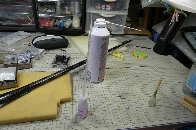カーボンロッドの表面はフッ素加工をして滑りを良くしています。 タミヤの物の代わりに買ってみたHRCのフッ素材です。 ドリフト屋さんにはお馴染みのようです。 ![]() ロッドエンドを取り付けるカーボンロッドの端をサンディングして脱脂しておきます。 ![]() ロッドエンドを差し込み、低粘度瞬間接着剤を流して接着します。 |