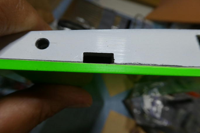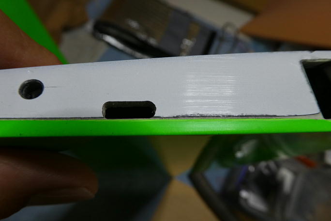 エルロンサーボの連結穴がザックリ加工してありますが、このサイズではメスコネクタハウジングは入りません。 ![]() メスのコネクタハウジングが入る様に加工します。 ![]() 接着するメスコネクタハウジング表面をサンディングして足付けにします。 ![]() 表面は硬化促進剤で拭いておきます。 硬化促進剤はロックタイトの712を使用します。 ![]() ![]() オスコネクタを刺して、カンザシの角度に合わせて瞬間接着剤で接着します。 突き出しは2ミリです。 |