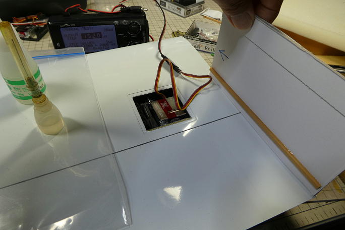 ![]() 下面スキンに負荷を分散させるために、3ミリバルサをIDSフレームと下面スキンの間に押し込み、瞬間接着剤で接着 します。 ![]() このように接着します。 ![]() カーボンパウダー入り5分エポキシを塗りつけて補強としました。 |
