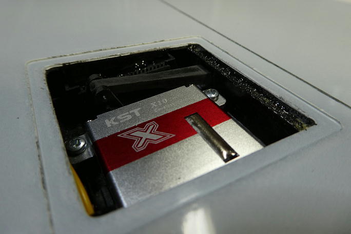![]() サーボホールの接着面をサンディングして平滑にしておきます。 ザラザラが無くなった所で良しとしました。 補強が薄いので削りすぎに注意します。 ![]() サーボホールの接着面を硬化促進剤で拭いておきます。 ロックタイトの712を使用します。 ![]() IDSフレームの接着面も硬化促進剤で拭いておきます。 こちらもロックタイトの712です。 ![]() 前作で作ったテンプレートを使い回します。 センター翼のエルロン側端面に合わせてあります。 ![]() サーボのニュートラル、1520μsとエルロンのニュートラルを合わせてIDSフレームの四隅のみ中粘度瞬間接着剤で仮固定 し、直ぐに硬化促進剤で硬化させます。 硬化促進剤はボブスミスを使用します。 ![]() 一度サーボを取り外し、IDSフレームの全周に中粘度瞬間接着剤を流し、直ぐにボブスミスの硬化促進剤で硬化させます。 サーボを外した所で、長すぎるサーボコードを切り詰め、フタバタイプのコネクタに付け替えておきます。 センター翼側の連結コネクタがフタバタイプだったので、刺す時に迷わずに済みます。 ![]() 抜き差しの際、コードを断線から守る為に、コネクタにシュリンクチューブを掛けておきました。 |