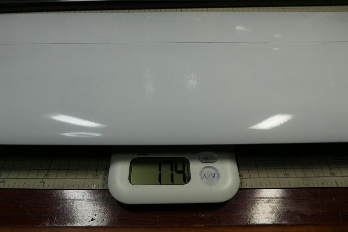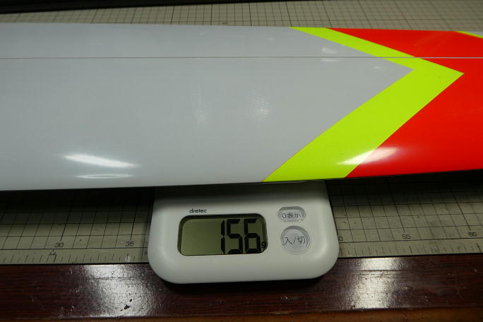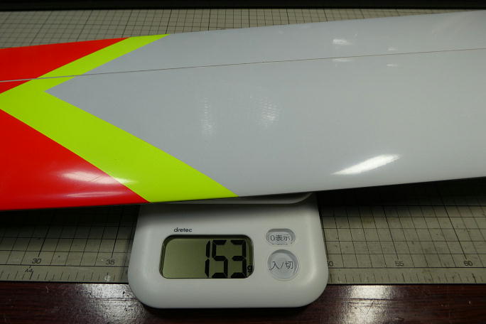 2分割のセンター翼の右翼は174グラム。 ![]() 左翼は172グラムです。 どちらも、かなり軽くなっていて、内部にはカーボンの裏打ちがありませんので、取り扱い は気を使います。 ![]() 外翼右は156グラム。 ![]() 左外翼は153グラム。 これは通常のExplorerとほぼ同じです。 |