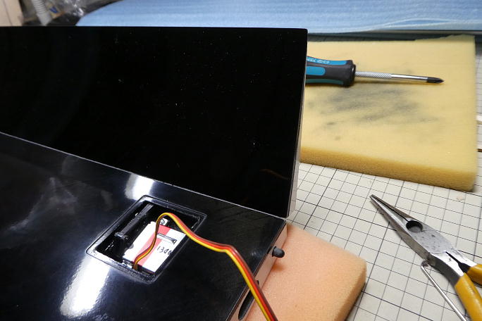 ![]() 主翼下面のスキンにも負荷を分散させるために隙間をスクラップバルサを入れて瞬間接着剤で接着します。 ![]() 瞬間接着剤が硬化後、カーボンパウダー入り5分エポキシを盛って補強とします。 サイドサーボを組み込み、動作確認をします。 ![]() 表皮にヒケが出ずに加工できました。 |