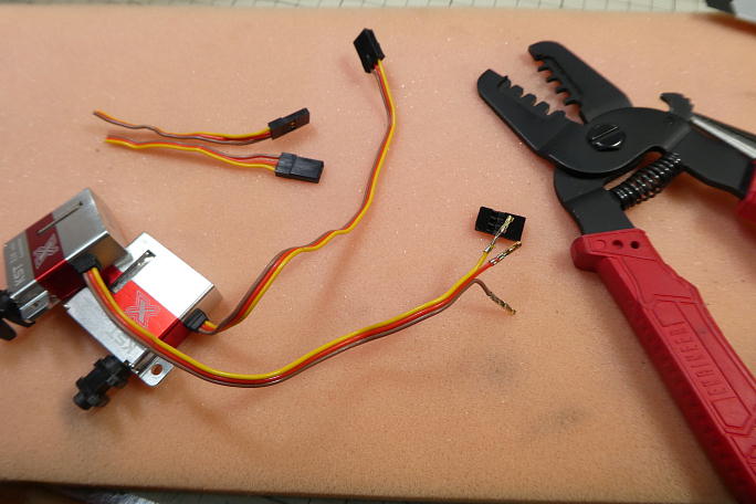 ![]() 一度組み込んだサーボですが、コードが長すぎました。 束ねるにも半端だったので、切ってフタバタイプのコネクターに 付け替えました。 キットに付属するエルロン用延長コードがフタバタイプだったので、丁度良いタイミングです。 ![]() コードを掴んで抜き差しするので、シュリンクチューブでコードを保護しました。 |