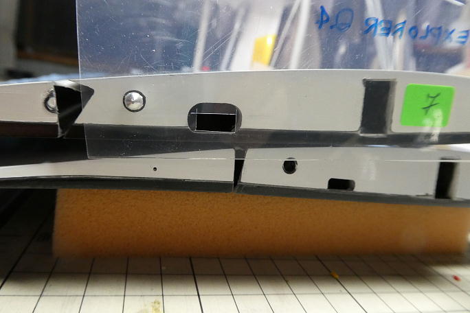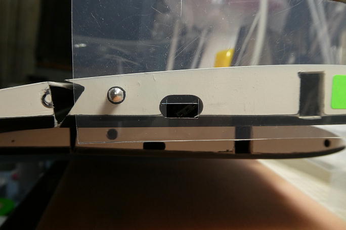 ![]() 下側に写っているセンター翼のコネクタホールからテンプレートを作り、外翼に合わせて見ます。 外翼のコネクターホール はかなり大きく開いているのですが、下側がギリギリでした。 ![]() 2ミリ程下側にコネクターホールを拡大しています。 |