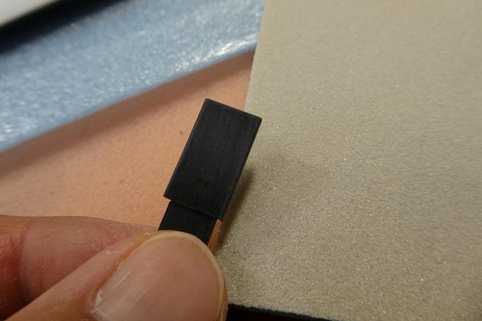 ![]() センター翼側のエルロンよう延長ケーブル。 コネクタを翼端に接着するため、表面をサンディングして足付けとしています。 さらに表面を硬化促進剤で拭いておきます。 ![]() カンザシの角度に合わせて、翼端面から2ミリ突き出して瞬間接着剤で接着しました。 |