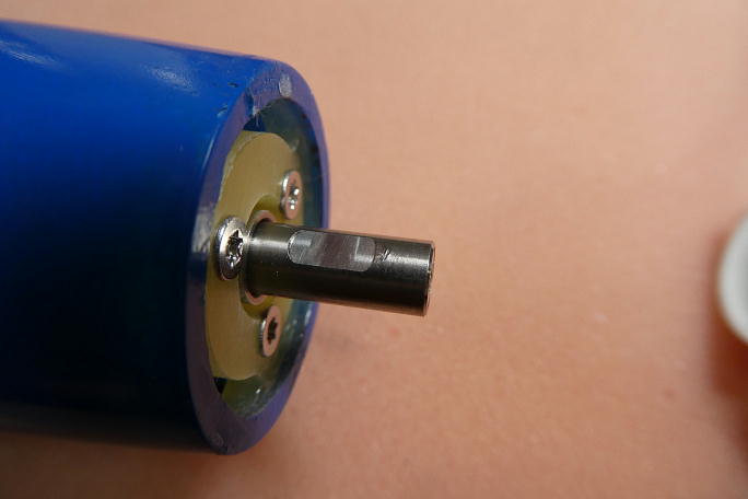 ![]() ハブを仮組した所、取り付け用のイモネジがシャフトのDカットから外れた所に当たっていました。 シャフトのDカット右の キズがイモネジの当たった跡です。 ![]() 切り粉が胴体内、モーターに飛ばないようにマスキングテープでしつかりと養生をして、リューターで削ってDカットを 延長しました。 ![]() |