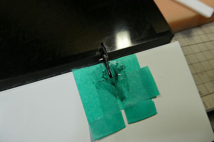 ![]() サーボホールの補強の為に5052にカーボパウダーを混ぜた物を作ります。 筆で塗りつけるので、パウダー量は 少なめです。 ![]() サーボホールに筆でカーボンパウダー入り5052を塗りつけます。 コアとスキンの境目は重点的に塗り込んでおきます。 ![]() 硬化後、毛羽だった部分をサンディングして平らにしておきます。 ![]() 1.5ミリピアノ線でリンケージロッドを作ります。 現物合わせで長さを決めますが、左右の翼で微妙にサーボホールの 位置にずれがあるため、3ミリ程バラツキが出来てしまいました。 ![]() エルロンホーンの接着部を良くサンディングしておきます。 ![]() エルロンホーンのポケット周囲をマスキングして、ポケットにカーボンパウダー入り5分エポキシを充填します。 ![]() ロッドを取り付けた状態でエルロンホーンを接着します。 はみ出たカーボンパウダー入り5分エポキシを拭き取りな がら、ホーンをポケットに沈めます。 ![]() 位置が決まったら直ぐにマスキングテープを剥がし、硬化を待ちます。 ![]() エルロンサーボのコネクターは抜き差しをする関係で首の部分をシュリンクチューブで補強してあります。 |