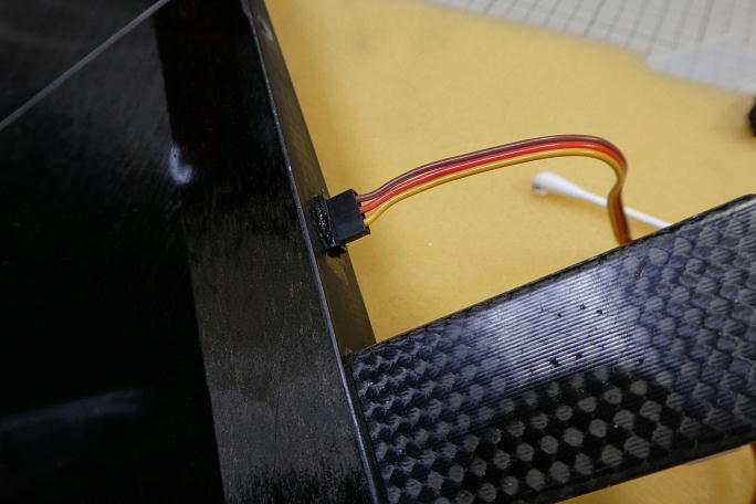 ハーネスはキットに付属します。 D−SUB9ピンコネクタはハンダ付け済みですが、対向側のコネクタは製作側で 取り付ける必要があります。 対サーボにはピンヘッダー、受信機向けにはオーナーさんに合わせてJRタイプのコネクタを取り付けます。 ![]() リード用にチューブが敷設してありました。 チューブにコネクタをテープで固定して、そーっと引いてハーネスを通します。 ちなみに、コネクタ横に開いている穴は、バラスト収納用のホールです。 ![]() 2.6ミリ皿タッピングネジでコネクターを固定します。 ![]() エルロンサーボコード連結用のメスコネクタハウジングは中央翼翼端に接着しますので、表面をサンディングして足付け をしておきます。 ![]() メスコネクタハウジングを翼端に瞬間接着剤で接着します。 カンザシの角度に合わせて傾けています。 |