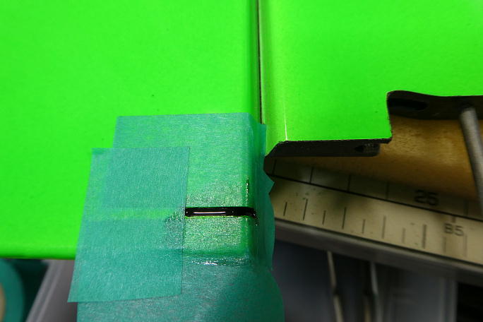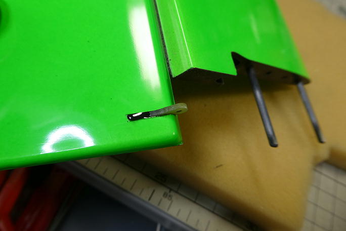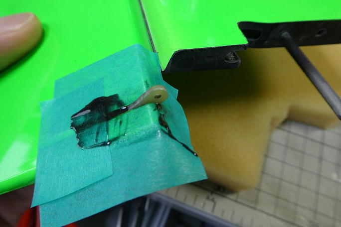 ![]() ラダーホーンの取り付け位置をリンケージロッドの位置から算出、マーキングします。 ![]() ラダーホーンに合わせて、表皮を超音波カッターで切り取ります。 ![]() 中のコアを掻き出ます。 反対側の表皮、裏側までしっかりとコアを掻き出します。 ![]() ラダーホーンの接着部はサンディングして足付けを施します。 ![]() ラダーホーンの取り付けスロットの周りをマスキングテープで養生し、カーボンパウダー入り5分エポキシをスロットに 充填します。 ![]() ラダーホーンをスロットに沈めます。 はみ出で来るカーボンパウダー入り5分エポキシはその都度取り除いておきます。 ![]() ラダーホーンを沈め切ったら、マスキングテープは直ぐに剥いでおきます。 |