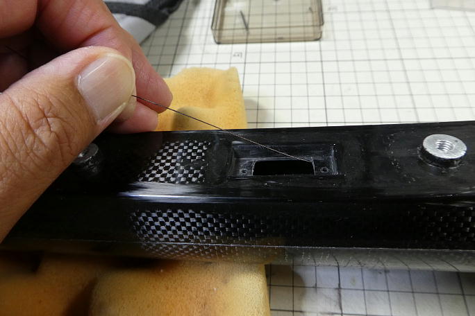 ![]() ワイヤーリンケージを固定するスリーブはハンドランチのキットに付属してきた物を流用しました。 きむらクラフトでは ハンドランチに関してはロッドリンケージに変更しているので、この手のパーツのストックが出来ます。 ![]() ワイヤーの折り返して接着する部分を硬化促進剤で拭いておきます。 硬化促進剤には持続時間の長いロックタイト の712を使用します。 ![]() ラダーリンケージの施工時、狭くてテンションが掛けられないので、コネクターホールから折り返したフリー側のワイヤーを 引っ張ってテンションを掛けました。 ![]() 通しておいたスリーブをミニやっとこでカシメて、低粘度瞬間接着剤を流して固定します。 |