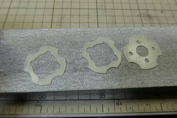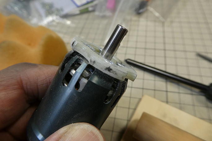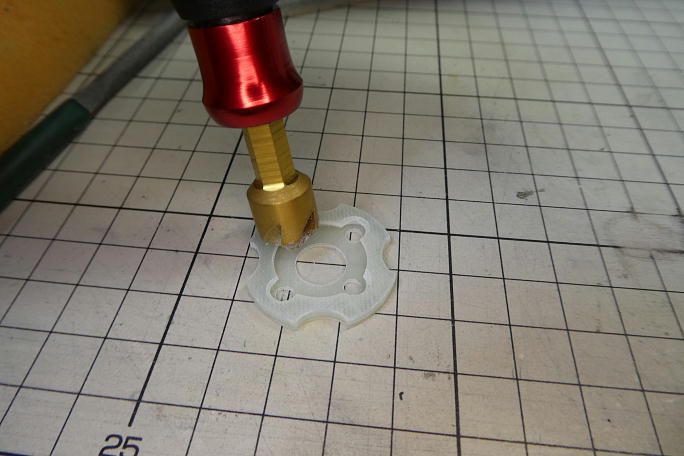 ![]() 付属のモーターマウントは1ミリFRP板3マイで構成されています。 これらを貼り合わせてモーターマウントにします。 右上に写っているのはこちらも付属の30ミリスピンナー用のテンプレートです。 ![]() 接着する面をサンディングして足付けをしておきます。 この後、低粘度瞬間接着剤で貼り合わせます。 ![]() モーターの取り付けには、今回皿ネジを使用しますので、ネジ穴の穴周囲をフリードリルでさらって皿穴加工を施します。 |