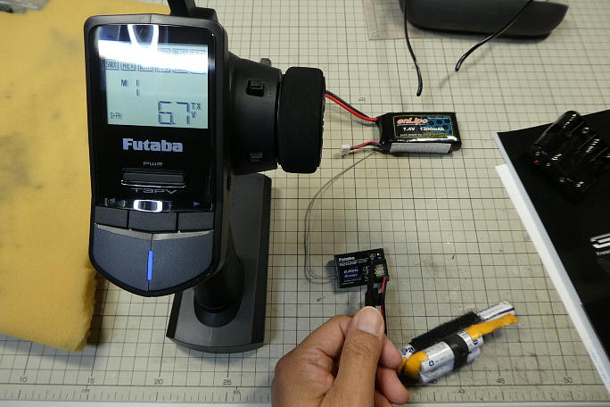 ![]() 送信機はフタバの3PVです。 送信機の電源は乾電池、ニッケル水素、LI−Feと幅広く使えます。 18SZや16SZで使っているバッテリーがそのまま使えますので、予備バッテリーを電源に使います。 ![]() リンク作業を行っています。 付属の受信機はS−FHSSですが、FHSS、T−FHSSとマルチプロトコルで、コンピュータ プロポなので、細かな設定が可能です。 ここまで出来ても送受信機セットで購入価格は1万円以下です。 ![]() お約束でスロットルチャンネルをREVとして、動作確認をしておきます。 |