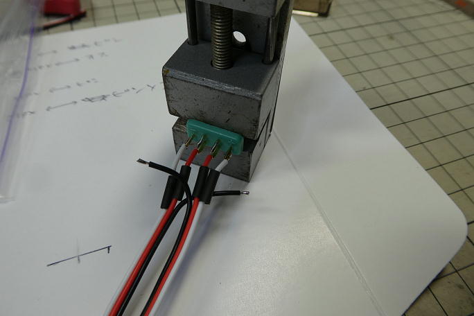 ![]() ハーネスを作製します。 受信機向けのコネクタのカシメ作業です。 ![]() 胴体と中央翼との接続はMPXコネクタがメーカー指定です。 ![]() 胴体と受信機用、主翼からフラップ、エルロンサーボ用です。 サーボ側は主翼上でコネクタを作る事になります。 |
