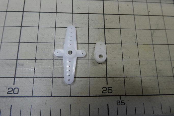 ![]() 後からではホーンが取り付けられないので、サーボホーンを取り付けた状態でサーボを搭載します。 ![]() |