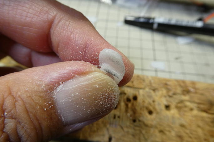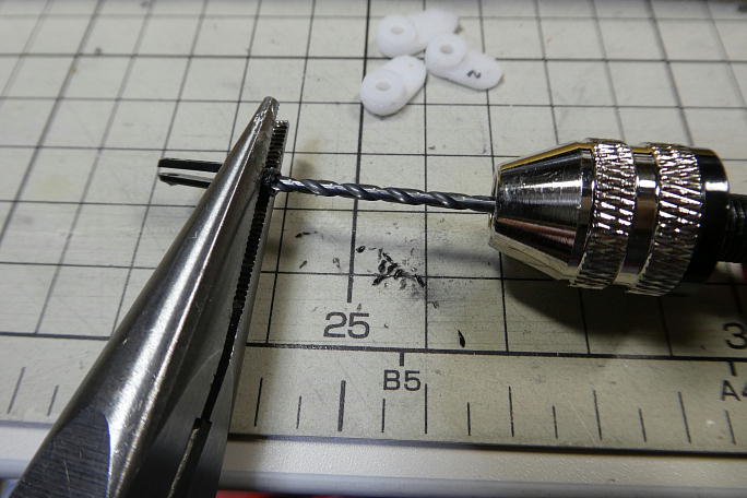 ![]() クレビスは2ミリカーボンパイプを介してリンケージロッドと接続されます。 クレビスの穴を2ミリドリルでさらいます。 ![]() 2ミリカーボンロッドをクレビスに低粘度瞬間接着剤で接着します。 樹脂クレビスは瞬間接着剤が効くので助かります。 |