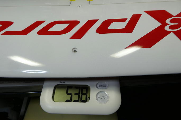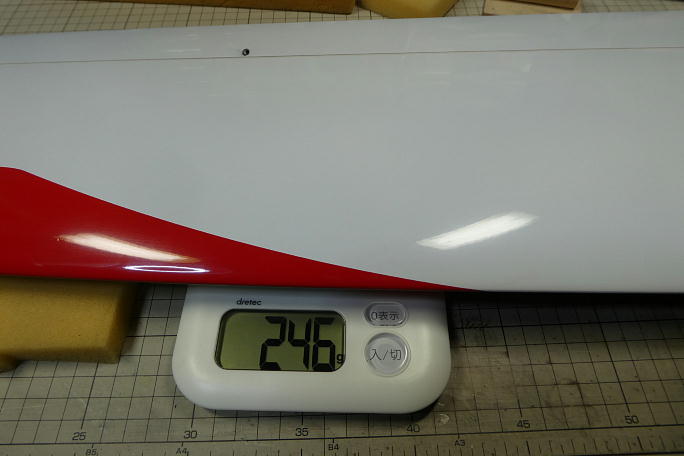 ![]() センター翼。 538グラムあります。 重さからF3J仕様と同じ物ですね。 ![]() 左外翼は243グラム。 ![]() 右外翼は246グラムあります。 こちらもF3J仕様と同じ物です。 Xplorer3のF5J仕様は中央翼が400グラム台、 外翼が170グラム台ですので仕様が違いますね。 この主翼なら、バラストを積んで2kgを超える機体重量でも大丈夫でしょう。 |