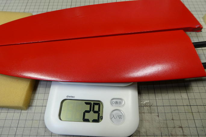 ![]() 水平尾翼は43グラム。 最近のXplorerシリーズの尾翼は、後塗りのようで、型塗りの昔のバージョンより5グラム 前後重くなっています。 ![]() 垂直尾翼は29グラムです。 こちらは前のバージョンも後塗りだったのでほぼ同じです。 |
