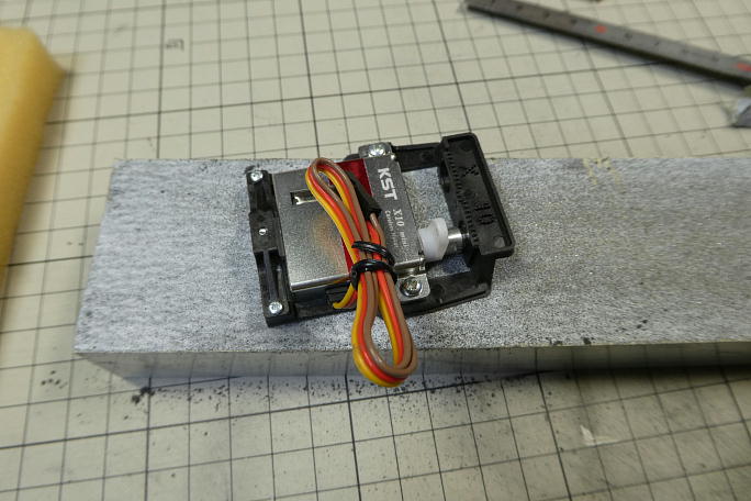 ![]() サーボベッドにサーボを取り付けます。 取り付け用のネジはポジドライブなので、専用のポジドライブドライバーを 使用します。 ![]() 不要な足を切断しておきます。 Miniでは無いスタンダードサイズで使う部分です。 ![]() ![]() サーボベッドの接着面をサンディングボードでサンディングして面出しをしておきます。 サーボラーメンの製品はとても 便利なのですが、ヒケやバリが多いのが玉にきずです。 サーボホールとフラップホーンの位置が左右で均等な、当たりの機体だったので、予めクレビスとロッドを組ませて おきます。 クレビスのピン間は79ミリとして組み立てておきます。 |