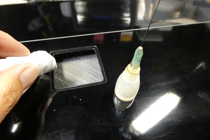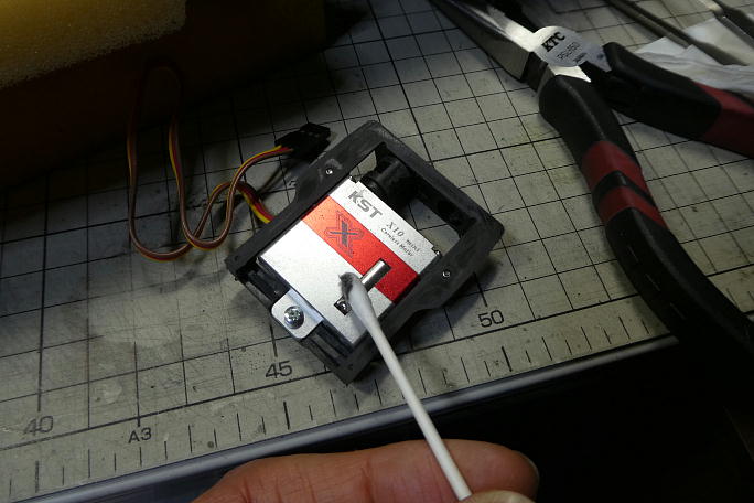 ![]() IDSサーボベースの接着面を削って面出しを行います。 ヒケが多い時は、サーボまで削っても面が出ない時もある ので、ほどぼとにしておきましょう。 サンディングボードで削りますが、削れない部分は千切ったサンドペーパーで 磨いておきます。 ![]() サーボホールの接着面をサンディングします。 この部分もリリースフイルムを剥がした時のざらつきがあるので、 平滑にしておきます。 ![]() ![]() サーボベースとサーボホールの接着面は硬化促進剤で拭いておきます。 硬化促進剤には持続時間の長い ロックタイトの712を使用します。 ![]() ニュートラルはXplorer3から使い回しているテンプレートを使って出します。 舵面のニュートラルをテンプレートで出し、サーボのニュートラルを190μs分オフセットして、サーボベースの四隅 だけ中粘度瞬間接着剤を一滴落として仮接着します。 瞬間接着剤を滴下したら直ぐに硬化促進剤を垂らして硬化 させます。 表皮に歪みを出さないためです。 硬化促進剤にはボブスミスを使用します。 ![]() サーボを一度取り外し。サーボベースの全周に中粘度瞬間接着剤を流し、直ぐに硬化促進剤で瞬間接着剤を硬化 させます。 硬化促進剤にはボブスミスを使用します。 |
