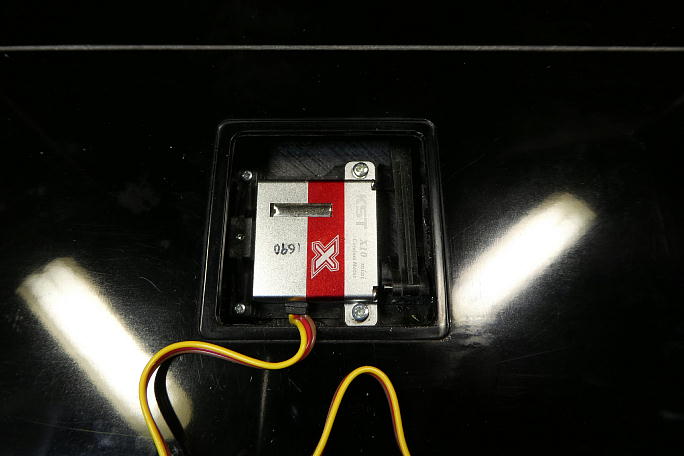 作業用の長い、L字型のピンが入ったままになっていますので、正規のピンを使って作業用ピンを押し出します。 先に作業用ピンを全部抜いてしまうと、フラップホーンとリンケージロッドの穴位置を合わせるのがめんどくさいです。 ![]() サーボを取り付け、正規のピンでサーボホーンとリンケージロッドを接続します。 ![]() 動作確認をしておきます。 |