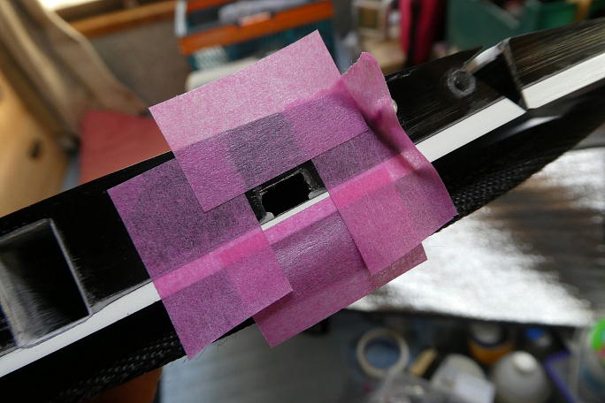 ![]() 中央翼で合わせたテンプレートを使って、外翼のコネクタホール位置を確認します。 随分と小さく加工されている様 なので、加工が必要です。 ![]() テンプレートのサイズより1ミリ大きく穴を広げる為にサイズに合わせてマスキングテープを貼り、マーキングと養生に します。 ![]() 加工の終わったコネクタホールです。 |