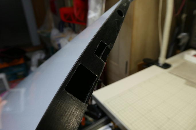 ![]() ![]() 右外翼は170グラム、左外翼は169グラムです。 ![]() ![]() こちらもIDSが取り付けられています。 エルロンは流石にヒンジの逃げが加工されています。 ![]() こちらの端面はコネクタホールのみ加工されていますが、付属コネクタのサイズピッタリなサイズです。 ただし、ピッタリなのはピッタリなのですが、上反角の分は考慮されていません。 |