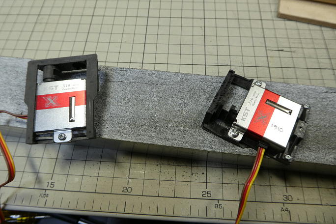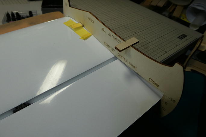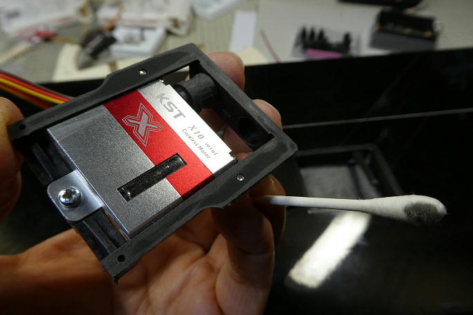 サーボを仮組みしたところ、サーボホーンとサーボホールの端までが7ミリしかありません。 ![]() サーボベースがそのままではサーボホールに収まらないので、耳の部分を切り落としました。 ![]() サーボベースの取り付け穴は一個分カットします。 ![]() サンディングボードでサーボベースの底面を削って面出しを行います。 ![]() 取り付けられていたロッドはバリが付いたままだったので、削って仕上げておきます。 ![]() サーボホールの接着面を良くサンディングしておきます。 カーボン目はでていますがどうも樹脂っぽい感じがします。 ![]() サーボベースの接着面を硬化促進剤で拭いておきます。 硬化促進剤にはロックタイトの712を使用します。 ![]() サーボホールの接着面も硬化促進剤で拭いておきます。 硬化促進剤にはロックタイトの712を使用します。 ![]() ニュートラル出しには付属のテンプレートを使用しました。 ![]() サーボのニュートラルと合わせて、サーボベースの四隅のみ中粘度瞬間接着剤で仮接着します。 ![]() 動作確認後に全周に中粘度瞬間接着剤を流し、硬化促進剤で硬化させておきます。 硬化促進剤にはボブスミスを 使用します。 ![]() 最終確認を行います。 まだ100μs分余裕が有ります。 |