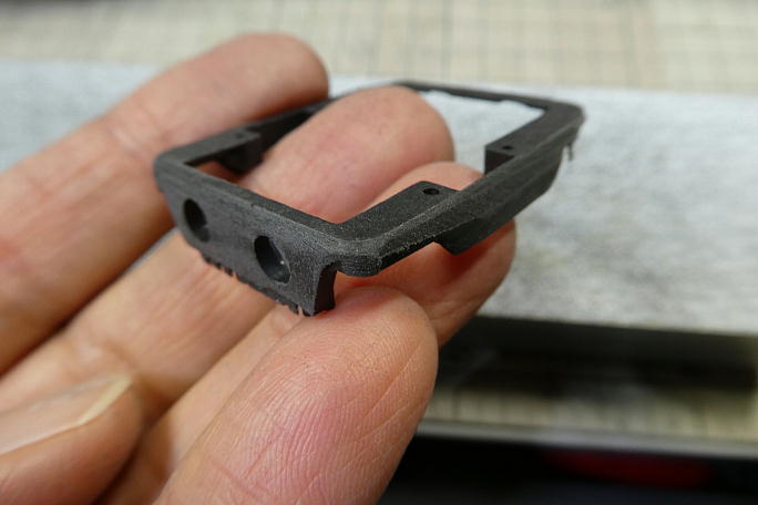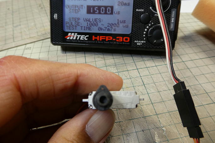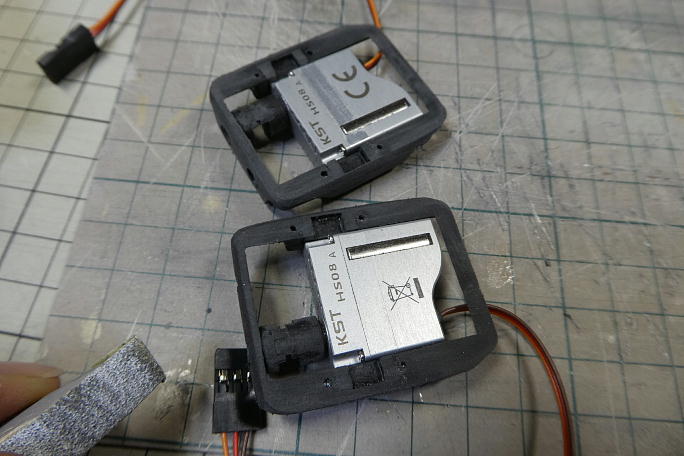 ![]() サーボベースはサーボサイズギリギリまで削り込みました。 また、ホーンの受け部分も1ミリ厚みを減らしています。 ![]() サーボホーンはサーボホールのサイズから下から2番目の物しか使えません。 切り離したらサーボホーンのバリやヒケ を落としておきます。 ![]() 右翼のサーボは1500μsのニュートラルでサーボホーンが真っ直ぐに付きます。 ![]() 左翼のサーボはスプラインの関係で100μs分オフセットしてセンターにきます。 KSTの08シリーズはスプラインの 数が少ないのでこの様な事が起こります。 薄く削った受け部分に合わせて、支持部分も削ってあります。 ![]() このサイズのIDSはベアリング支持ではないので、軸部分をテフロンコーティングして滑りを良くしてあげます。 ![]() ようやくサーボが組めました。 ![]() サーボベースの接着部を良くサンディングしておきます。 ![]() サーボホールの接着部もサンディングして足付けをしておきます。 |
