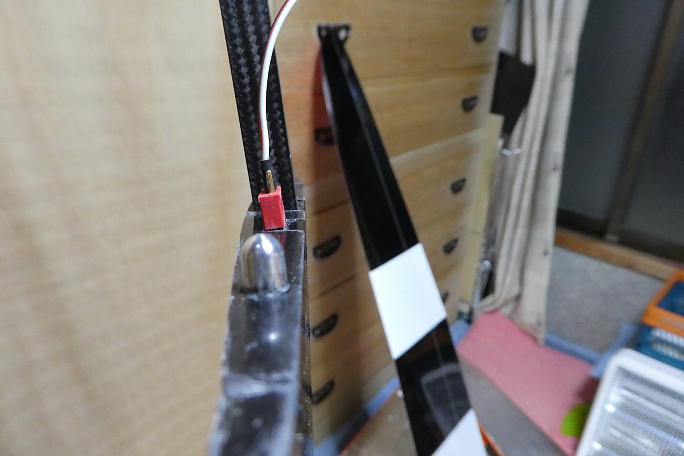![]() 外翼のコネクタを端面より1ミリオフセットして低粘度瞬間接着剤で接着します。 ![]() 中央翼のコネクタピンは、上反角に合わせてピンを曲げる必要があります。 翼を組む時は、コネクタの差し込みが 自動的に行われるので、かなりキツくなります。 |