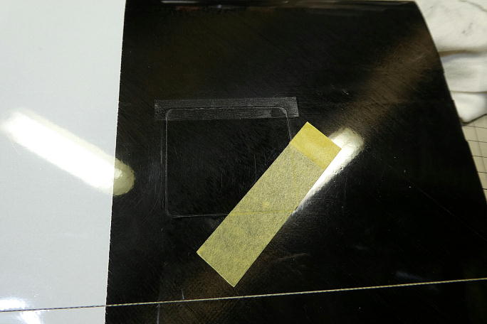 ![]() サーボカバーの取り付けには、カバーフイルムを10ミリ幅に切った物を使用しています。 貼りやすく、剥がしやすい のが利点です。 ![]() マスキングテープでカバーを仮止めしてから貼っていきます。 カバーは角の丸め加工をする必要があります。 |