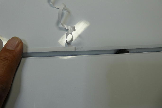 ![]() 市販のギャップシールが付属していました。 ![]() 位置決めをしてから、裏紙を引き抜くようにして貼って行きます。 |