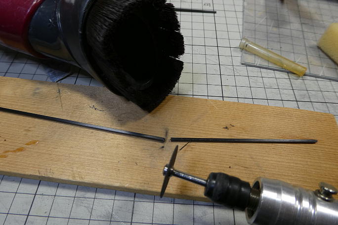 簡易ニュートラル出しツールでVテールのニュートラルを合わせます。 簡易ニュートラル出しツールと付属のゲージの ニュートラルは合致していることは事前に確認済みです。 ![]() サービスホールが狭いため、ロッドは一度引き抜いてからカットしました。 ![]() ロッドの接着部分は角を落として2ミリの穴に入る様にしておきます。 ![]() 1500μsのニュートラルに合わせてロッドとロッドエンドを低粘度瞬間接着剤で接着します。 ![]() ![]() 施工の終わったリンケージの様子です。 |