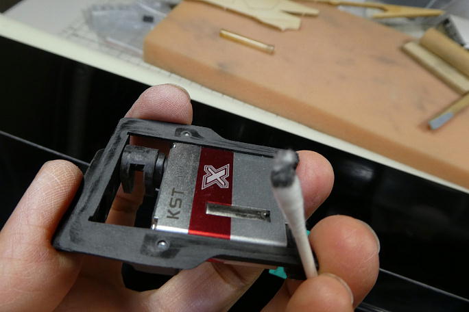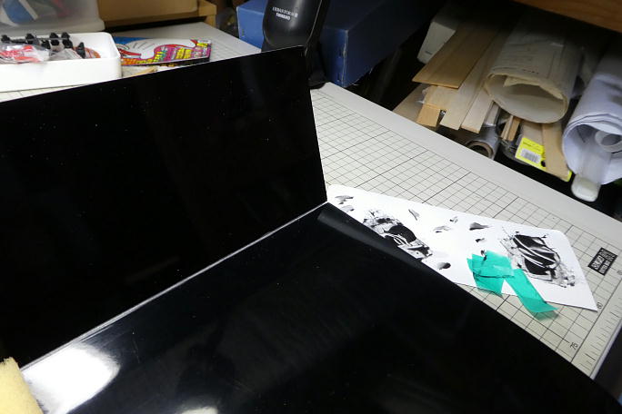 ![]() ロッドは穴の間隔が60ミリの物を使用します。 ![]() 例によってヒケやバリが沢山あるので、サンディングボードで面出しと面取りをしておきます。 ![]() サーボホールの内面はカーボンで補強されていますが、リリースフイルムを剥がしたままの状態でザラザラとしています。 このままですとサーボベッドとの密着がされずに、瞬間接着剤では接着不良となるので、良くサンディングして平滑に しておきます。 ![]() ![]() 清掃ととプライマー効果を狙って、サーボホールとサーボベッドの接着部を硬化促進剤で拭いておきます。 硬化促進剤には持続時間の長いロックタイトの712を使用します。 ![]() F3Jの頃より使用している翼端のテンプレートを使用してフラップのニュートラルを出します。 親指を掛ける穴を新設 しました。 ![]() フラップのニュートラルを出し、サーボは270μs分オフセットした状態でサーボベッドの四隅のみ、一滴の 中粘度瞬間接着剤を垂らして仮接着をします。 瞬間接着剤を垂らしたら直ぐに硬化促進剤を垂らして硬化させます。 自然に硬化するまで放置すると、ロハセルに瞬間接着剤が染みこみ、表皮が歪んでしまうことがあるからです。 硬化促進剤には白化の少ないボブスミスの物を使用します。 ![]() ロッド類に干渉部分がないか、動作確認をしておきます。 ![]() 動作確認が正常なら、サーボを一度外し、サーボベッドの周囲に中粘度瞬間接着剤を流して本接着をします。 こちらも瞬間接着剤を流したら、直ぐにボブスミスの硬化促進剤を垂らして硬化させます。 |