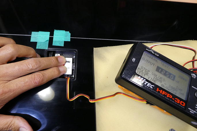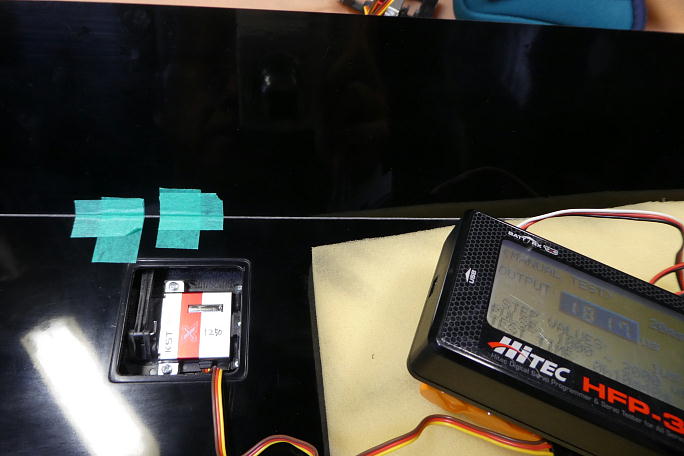 ![]() ![]() 最終の動作確認を行います。 1000μsのフル舵角でブレーキ動作を見ています。 |