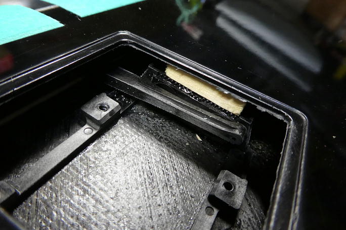 ![]() ![]() 3ミリのスクラップバルサでくさび状のパーツを作り、サーボベッドと下面スキンの間に押し込んで瞬間接着剤で接着 します。 サーボからの負荷を下面スキンに分散させるためです。 ![]() バルサだけでは弱いのと、見た目の問題で、バルサの表面にカーボンパウダー入り5分エポキシを塗って補強とします。 ![]() マスキングテープは塗りつけ作業終了後、直ぐに剥がします。 |