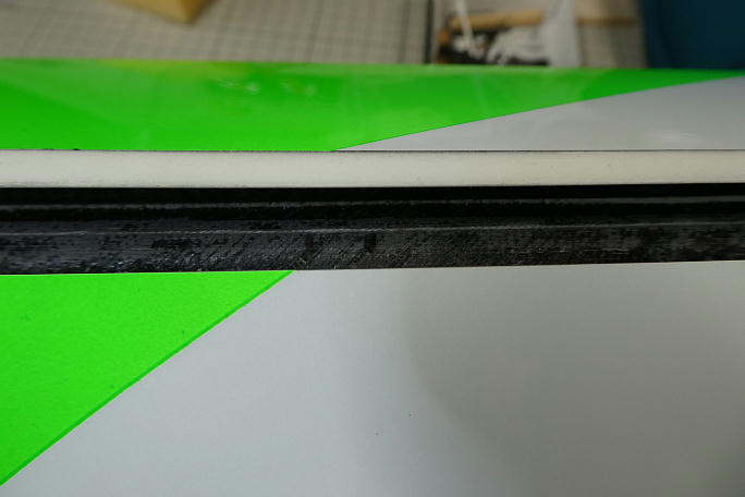 ![]() ![]() ギャップシールにロッドの逃げを加工します。 3ミリの切り込みでUP側の舵角が確保できました。 |