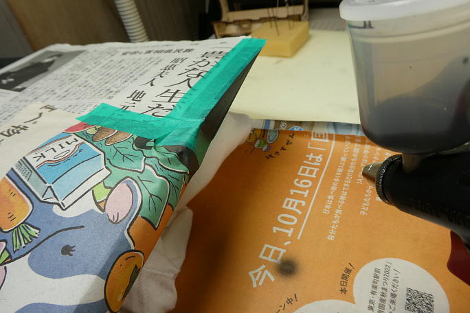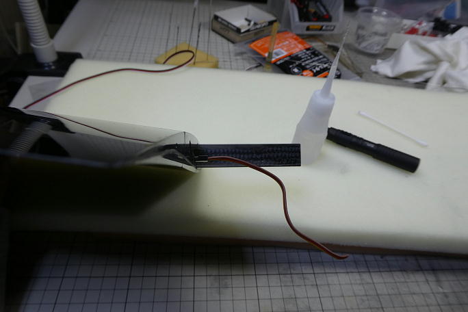 ![]() 翼端上反角が9°と大きいため、エルロンとフラップが干渉します。 ![]() 削って間隔を広げますが、当たる所を確認しながら削って行きます。 ![]() ![]() ニュートラル時で、エルロンと不ラツプの後縁同士が 2ミリ程離れるように削りました。 地が出てしまっています。 ![]() 水性のブラックをエアブラシで塗装しておきました。 |