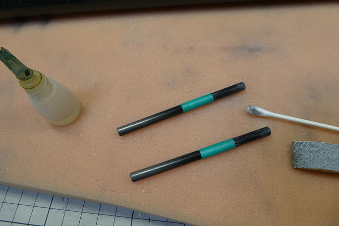![]() Vテールのカンザシは軽く接着します。 表面に離型剤がしっかりと付いていて、そのままでは接着剤が乗りませんので、 接着部のみ軽くサンディングしておきます。 ![]() 接着部を硬化促進剤で拭いておきます。 ロックタイトの712を使用します。 ![]() カンザシは刺して、ほんの僅か反対側に突き出した状態で、突き出した部分に一滴だけ低粘度瞬間接着剤を垂らして 接着します。 脱落さえしなければ良い感じです。 |