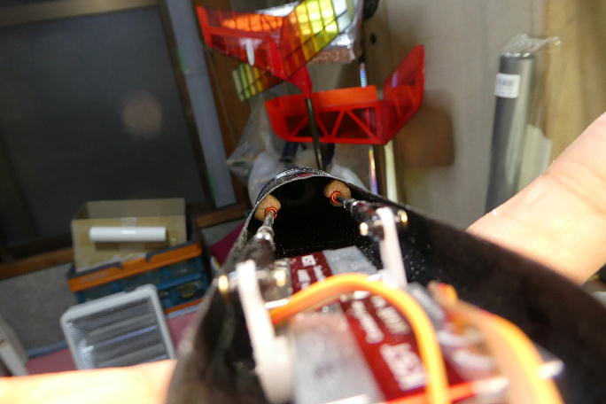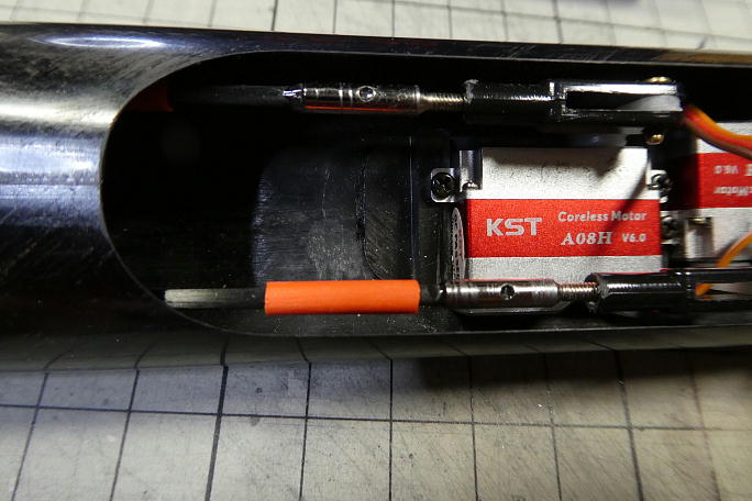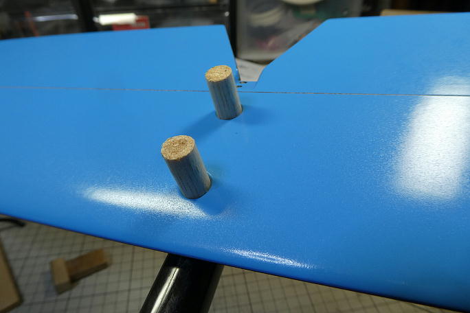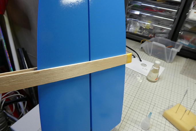 3ミリバルサを2枚束ねた「簡易ニュートラル出しツール」で舵面のニュートラルを出します。 ![]() 1500μsのニュートラルでサーボのニュートラルを合わせて、リンケージロッドのカット位置をマーキングします。 ![]() カーボンの削り粉が散らないようにリードのキッチンタオルで養生して、リューターの切削砥石でカットします。 ![]() 切断面から15ミリ程、接着部にになる所をサンディングしておきます。 ![]() ニュートラルを確認しつつ、低粘度瞬間接着剤でロッドエンドとリンケージロッドを接着します。 ロッドエンドの空気抜き 穴から接着剤が出るのを目安とします。 ![]() 水平尾翼は10φのバルサ丸棒をダミーカンザシとして胴体に仮固定してリンケージを行います。 ラダーの時と同様に、簡易ニュートラル出しツールでニュートラルを出します。 ![]() ![]() ![]() らだーの時と同様、リンケージロッドをカット後に低粘度瞬間接着剤でリンケージロッドとロッドエンドを接着します。 樹脂パイプを忘れずに通しておきます。 通すのを忘れてしまった場合、樹脂パイプに縦に切れ目を入れる事で押し込む事が可能です。 ただ、その後の接着工程 で接着剤が回り込む恐れがあるので、注意が必要にになります。 |