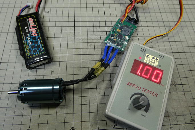 サーボテスターを使用して、モーターの回転方向を確認します。 低速でモーターを回し、軽く指で触れることで回転方向